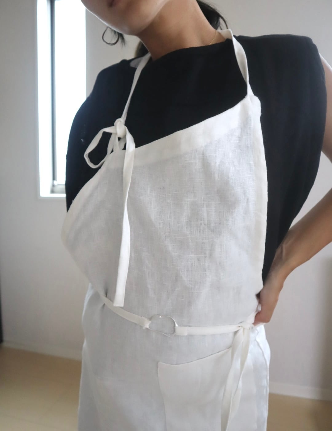 ややしっかりとした厚みのあるリネンエプロンです