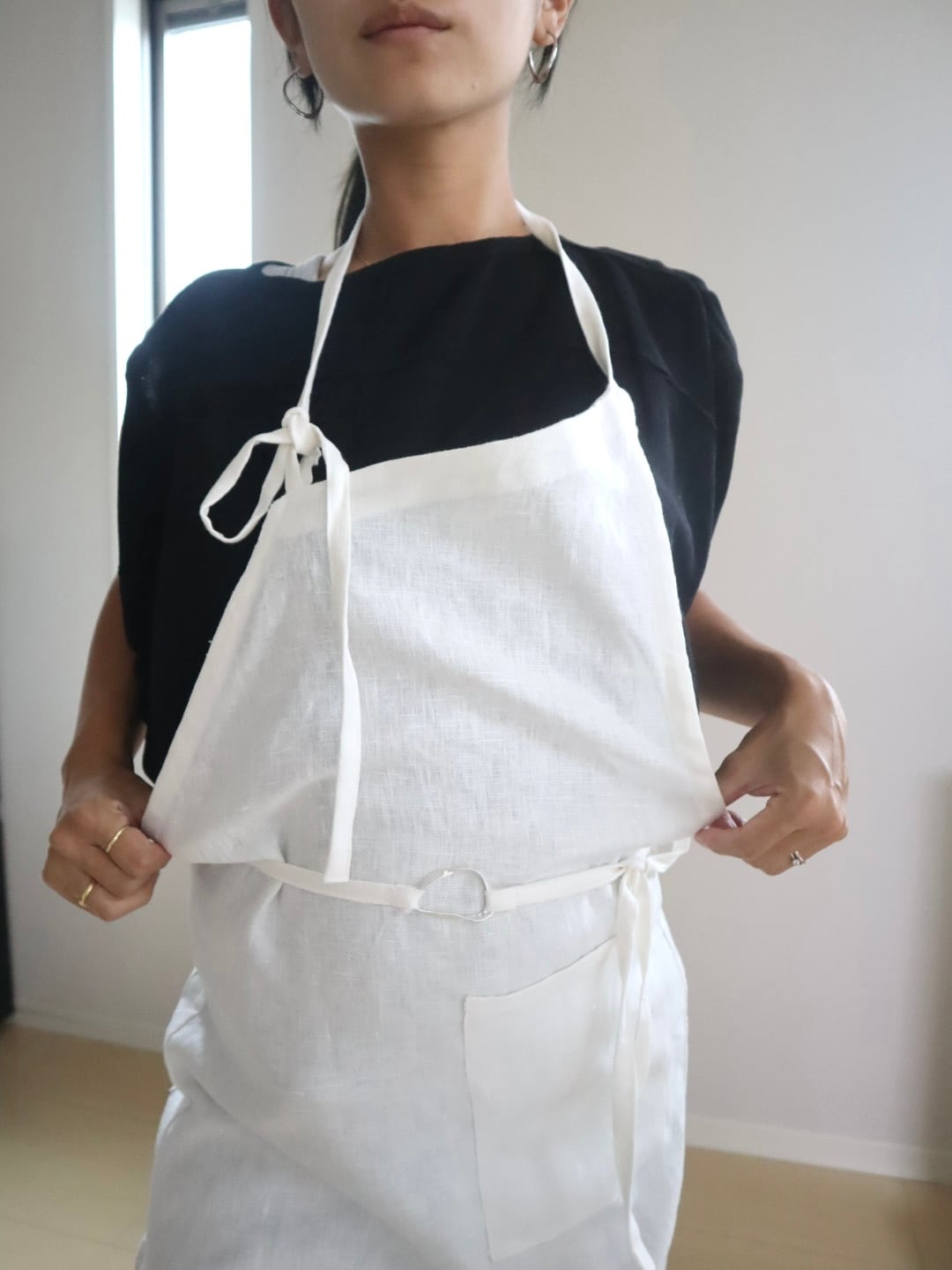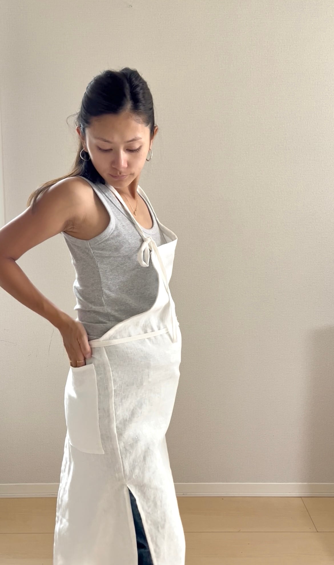 シンプルなリネンエプロン